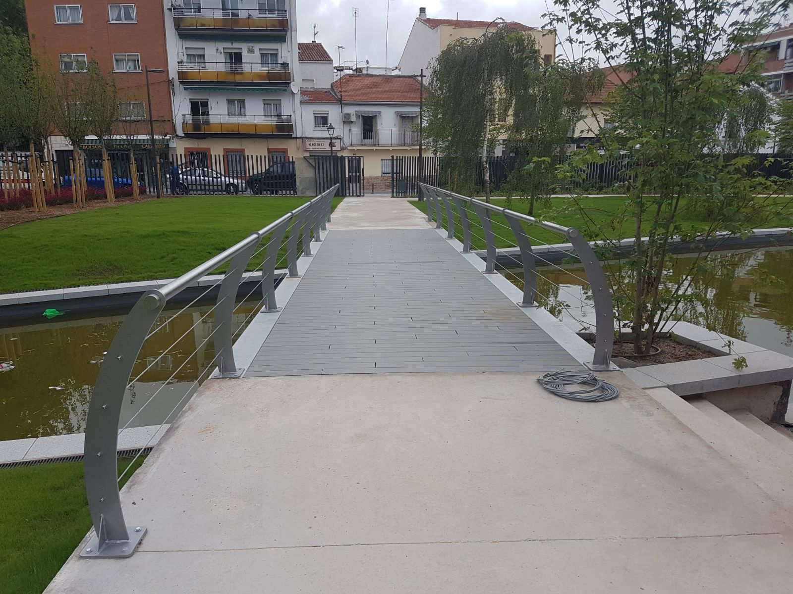 Construcción de cerramientos verticales y perimetrales, construcción de pasarela embarcadero para lago y barandillas de acero para el Nuevo Parque Central de Torrejón de Ardoz .