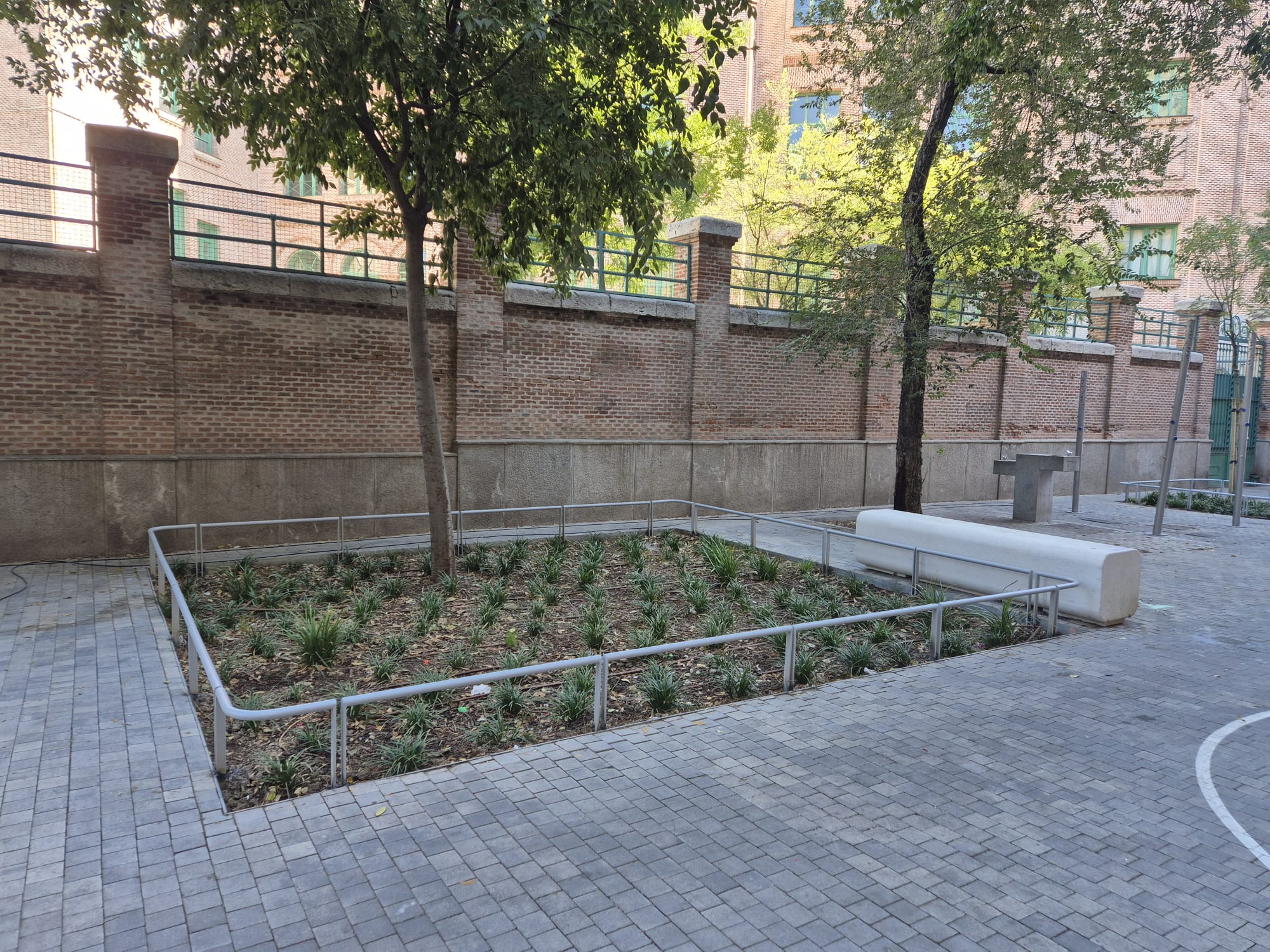 - Instalación: Se evitarán intrusiones dentro del alcorque para respetar el sistema radicular de las plantas, aconsejando su instalación por el perímetro exterior mediante placa de anclaje atornillada al suelo con 4 tornillos avellanados de acero inoxidable y cabeza avellanada y taco del mismo material.
